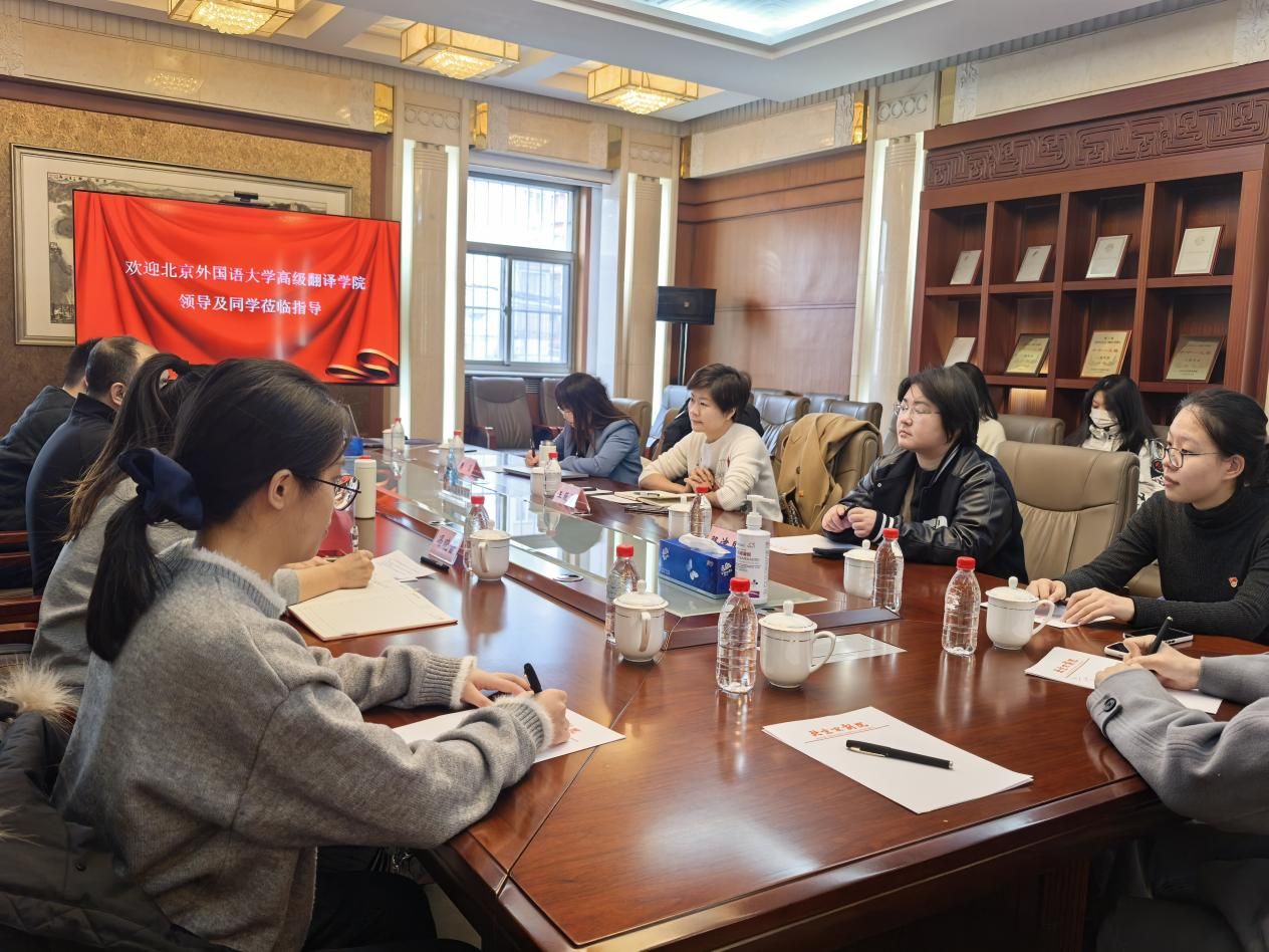 为深入学习贯彻习近平文化思想,推动中华优秀传统文化 “走出去”,12 月 10 日下午,高级翻译学院学生第二党支部与北京京剧院开展红色“1+1”支部共建活动。学院党总支书记王薇薇、项目指导教师樊晶以及师生党员代表参加。北京京剧院副院长孙鹏、人力资源部主任王天东、演出部副主任冯晓蕾参加座谈。此次活动以京剧艺术为纽带,搭建起校院合作的坚实桥梁,为传统文化国际传播注入青年力量。