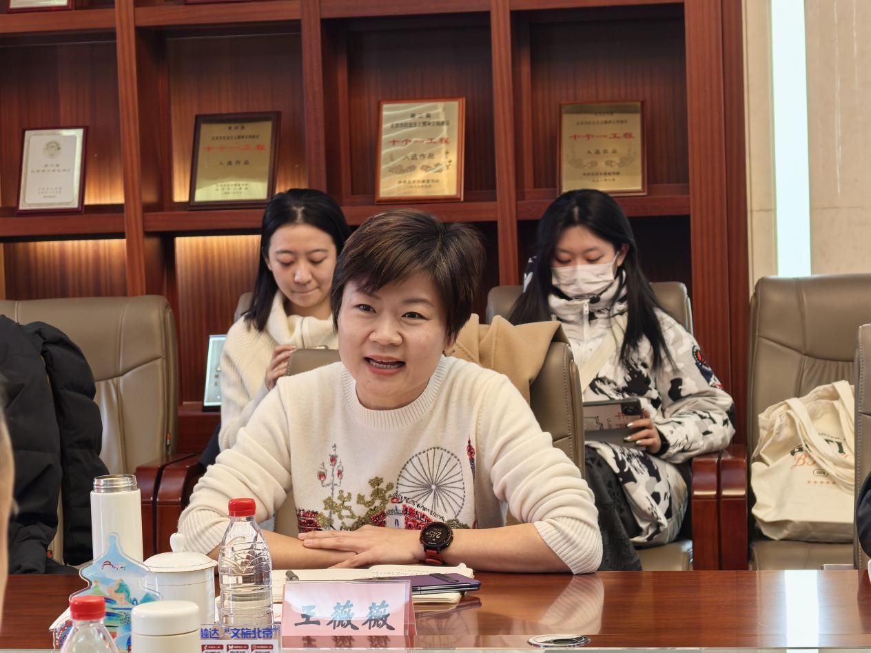 王薇薇书记对京剧院的热情接待表示感谢,并介绍了北外及高级翻译学院的办学特色、人才培养成果及国际传播优势。作为中国第一家高级翻译学院,北外高翻前身为1979年设立的联合国译员训练班,多年来培养了大批顶尖翻译人才,其多语种翻译教学与国际传播实践能力备受业界认可。王薇薇表示,学院拥有深厚的翻译学科积淀与丰富的国际传播资源,期待与北京京剧院开展长期、深入的合作,以翻译为纽带,让更多京剧经典走向国际舞台。
