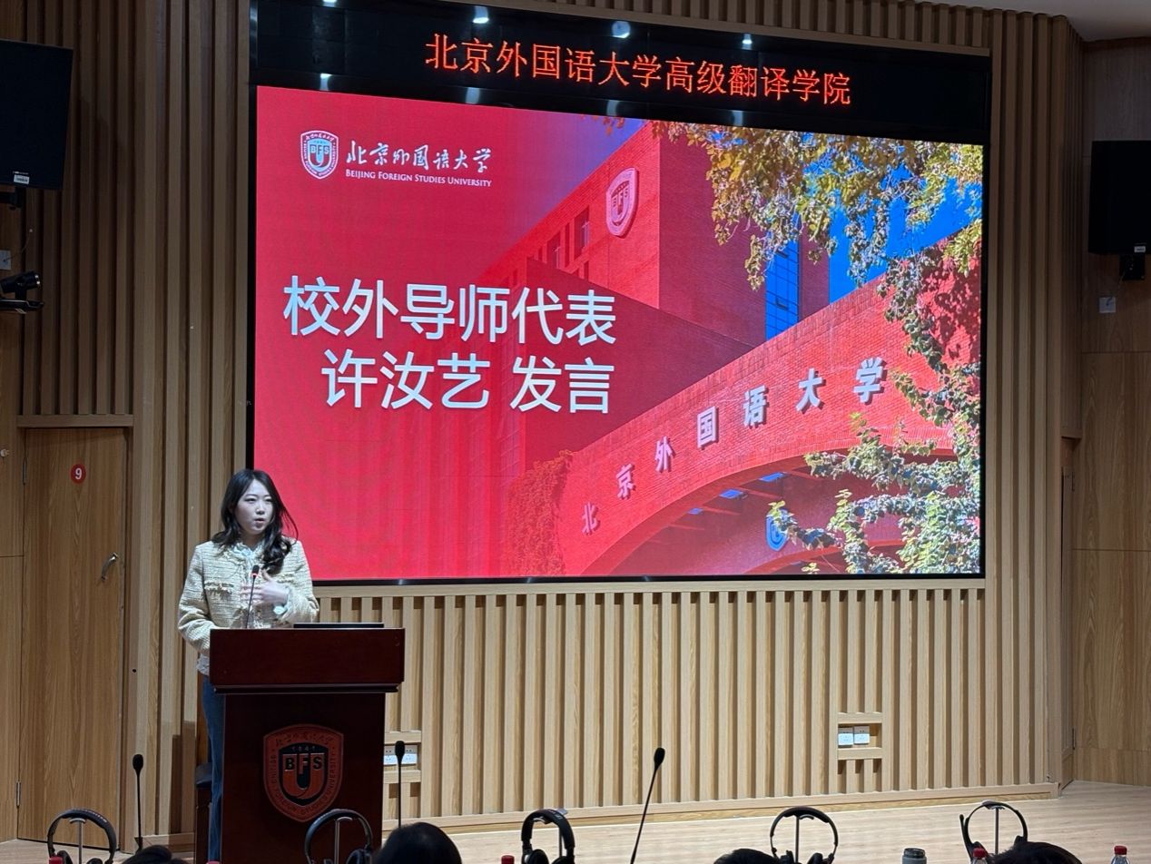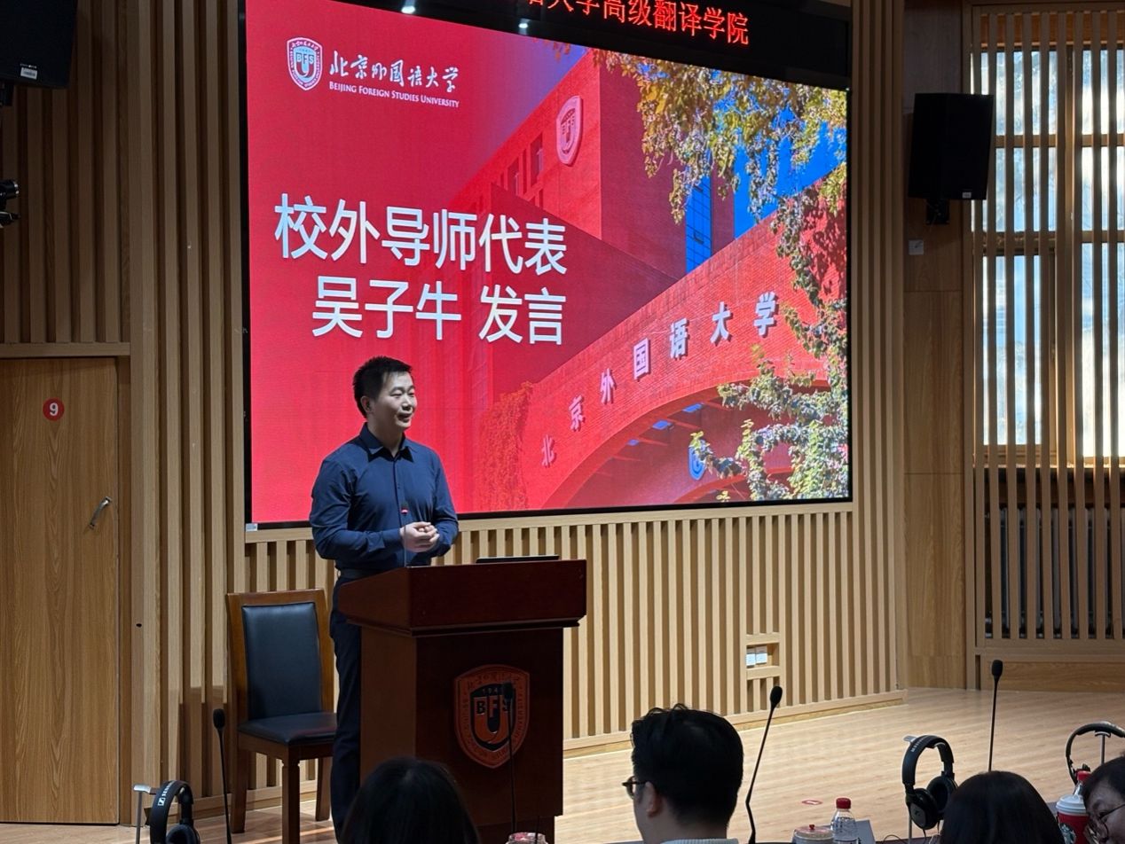 校外导师代表吴子牛、许汝艺先后发言,以“石头汤”与“天选媒体人”两个鲜活故事,向在场新生传递了“时代容错率远高于想象”的信心,强调战略先于战术、翻译素养的迁移、树立端正的心态,希望以自身经验帮助学弟学妹们成长进步。
