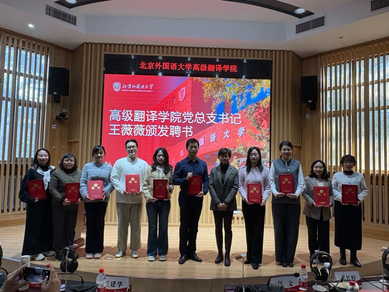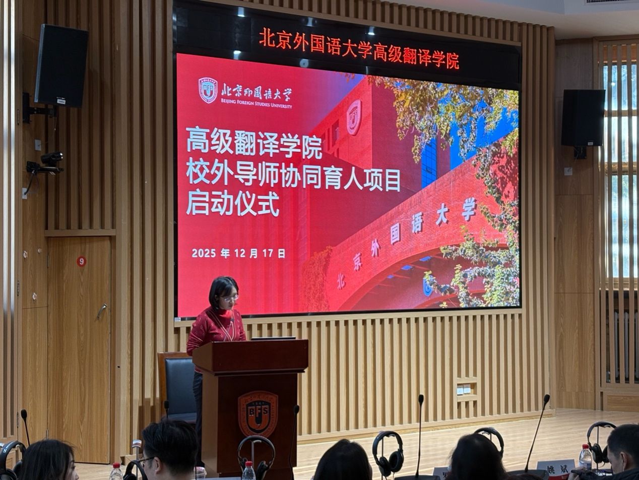 2025年12月17日下午,高级翻译学院“研究生校外导师协同育人项目”启动仪式正式举行。北外就业中心主任兰建华,高级翻译学院党总支书记王薇薇、院长任文、副院长李长栓、副院长姚斌、首批校外导师代表、教师代表出席活动,2025级研究生积极参与。高级翻译学院实习实践中心主任王苏阳担任主持人。