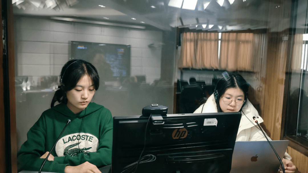 活动现场设置7个同传箱,选手们进行了60分钟的全流程实战演练。模拟两会记者会真实场景,涵盖经济民生、大国外交等核心主题,学生在翻译中读懂国是、体察民生,实现从“学翻译”到“译中国”的思想升华,深刻理解中国故事的讲述方式与时代担当。面对数字精准翻译、民生政策温情传递、外交话语立场把握等考验,选手们沉着应对,传出的声音沉稳流畅,充分展现了扎实的专业功底和良好的心理素质。