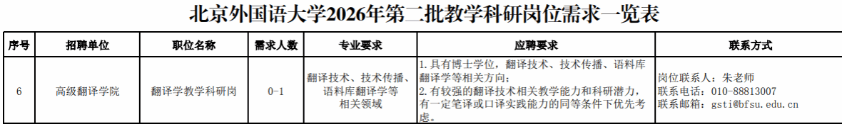 附件一:《北京外国语大学2026年第二批教学科研岗位招聘情况说明》