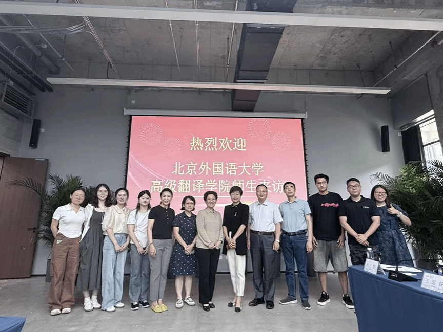 为深入贯彻落实立德树人根本任务,推进翻译人才培养与国家语言服务战略深度融合,6月19日,北京外国语大学高级翻译学院一行赴中国对外翻译有限公司(以下简称“中译公司”)开展调研交流活动。学院党总支书记王薇薇、副院长李长栓、副院长姚斌带队,与中译公司党委委员、纪委书记、副总经理柴瑛,第一党支部书记、培训中心主任刘四元,联合国与国际组织语言服务部副主任王欣等进行深入交流。