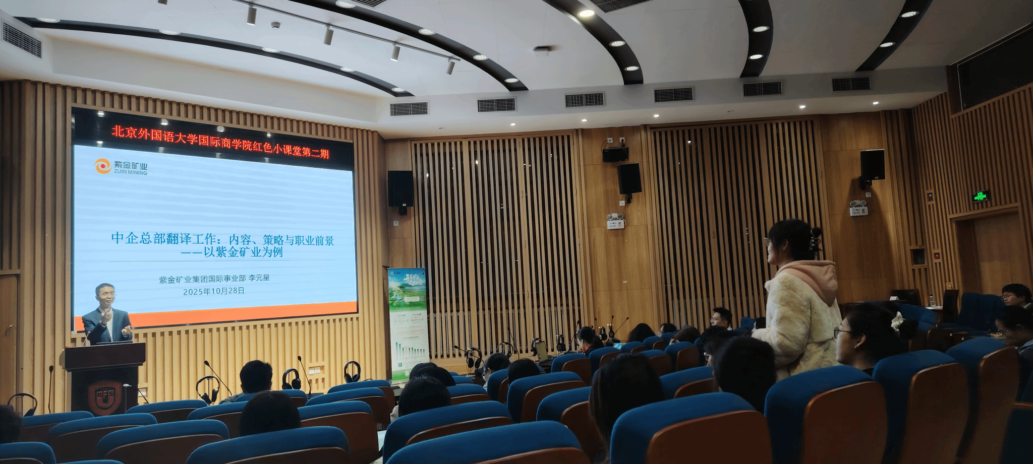 2025年10月28日晚,紫金矿业2025招聘会宣讲会在高级翻译学院成功举行。我院李长栓副院长、辅导员李雪丽老师出席此次宣讲会,各年级同学积极参与。